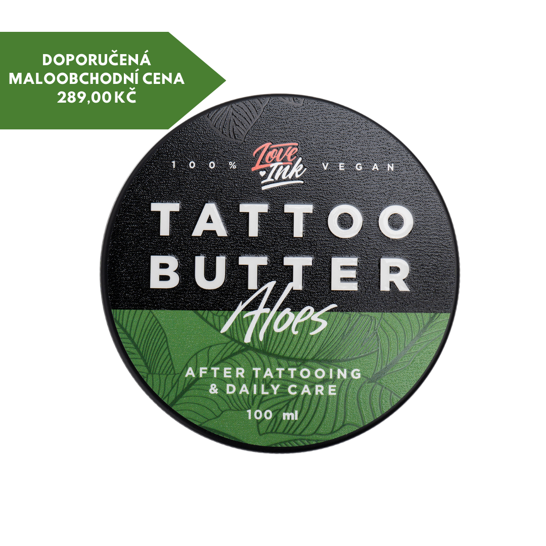 Práve pred vami sa objavuje Tattoo Butter Aloe v novom, vkusnom dizajne – čierna hliníková plechovka – to nový obal, ale rovnaká osvedčená receptúra. Toto jedinečné zloženie kombinuje prírodné vegánske maslá s unikátnymi vlastnosťami aloe vera. Skvele sa hodí ako pre umelecké diela, ktoré práve skrášlili vašu pokožku, tak pre tie, ktoré vás zdobia už dlhšiu dobu.