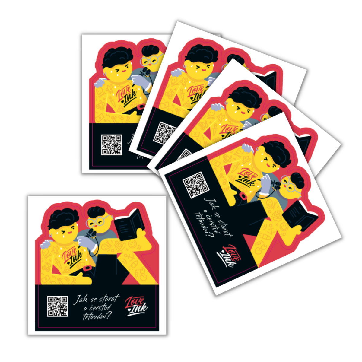 K naročilu dodajte naše nove nalepke - letake s QR kodo. Po skeniranju kode vas bodo preusmerili na stran pielegnacjatatuazu.pl/cs/cz , kjer se bo stranka naučila, kako skrbeti za svežo tetovažo.